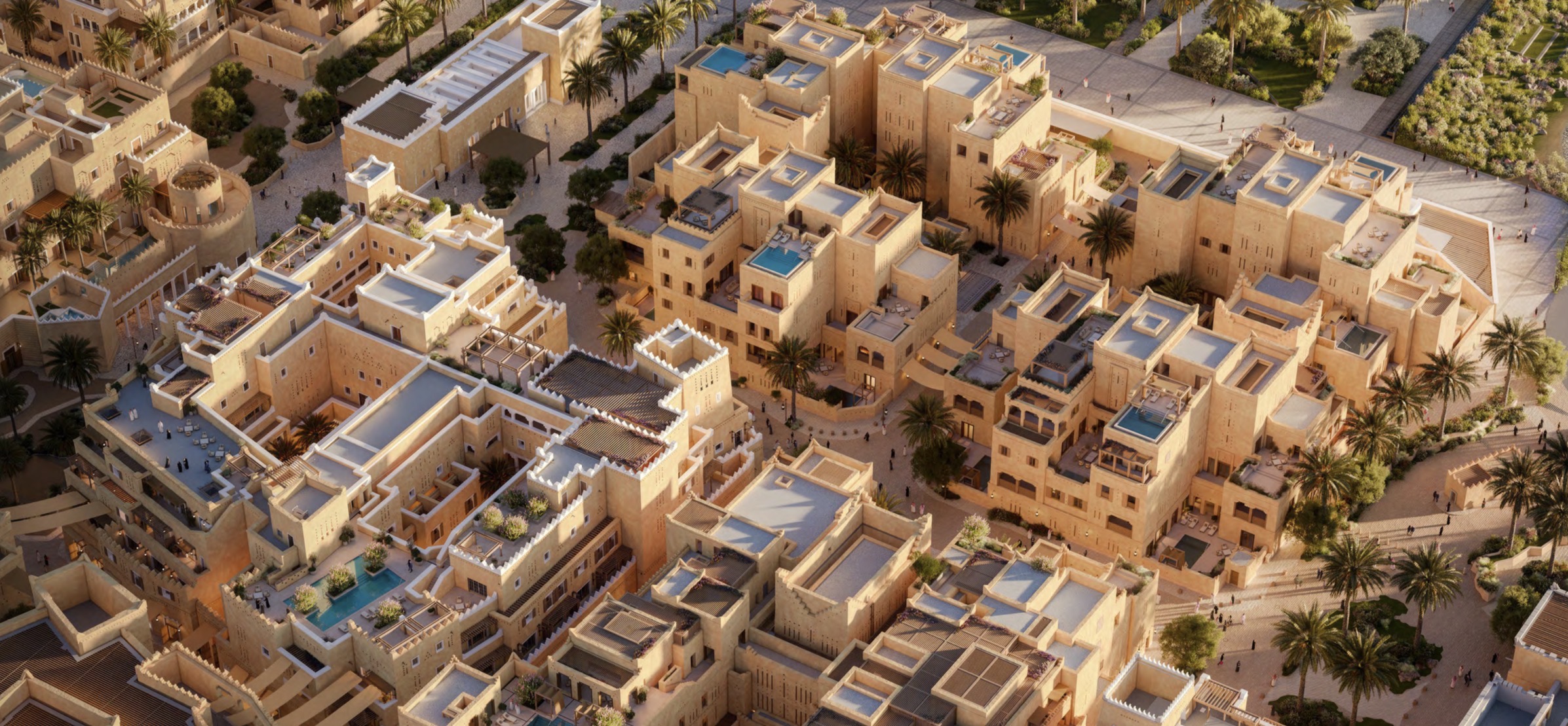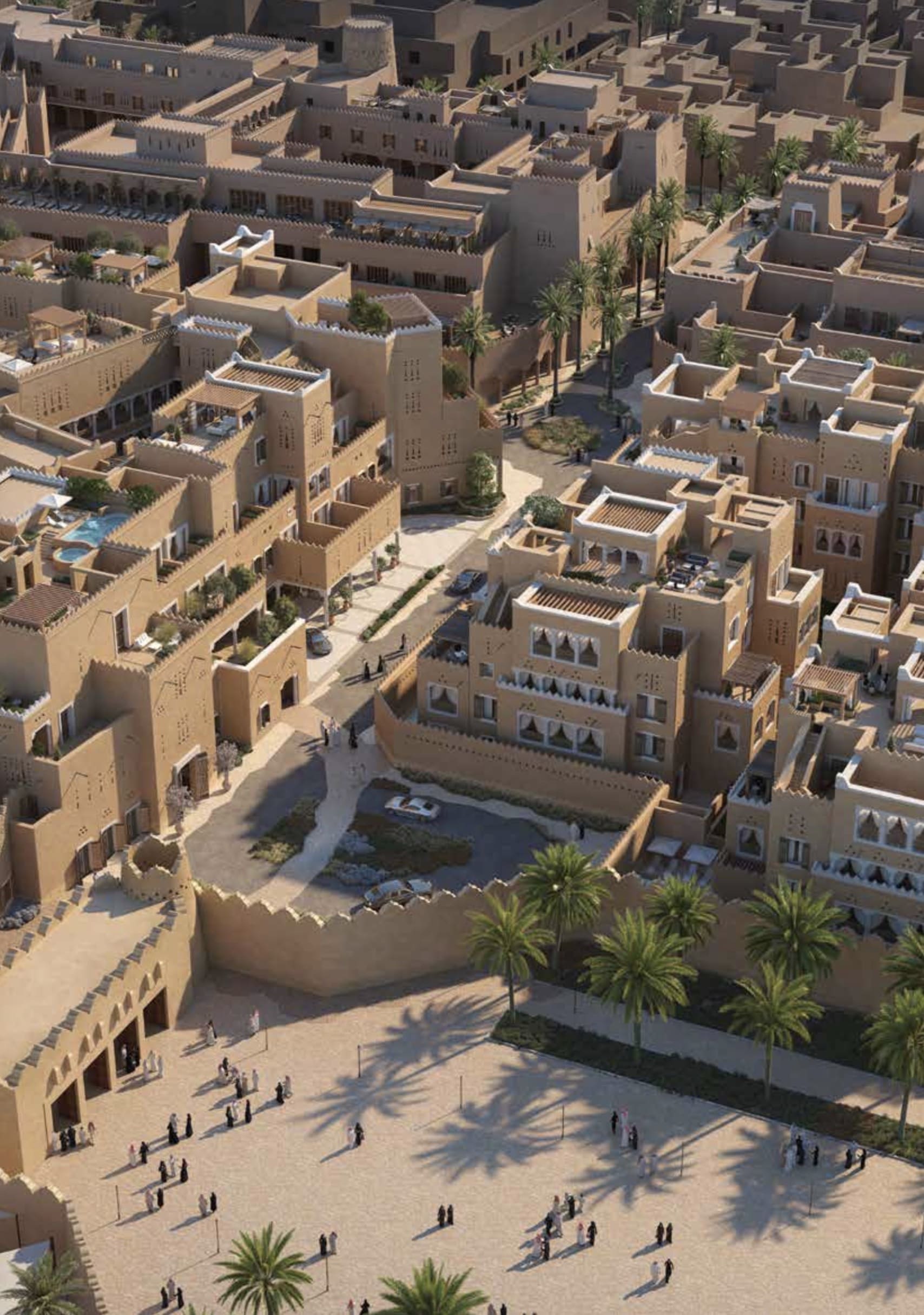 Corinthia is a collection of ten private residences built in the traditional najdi style. The project is located in the center of Diriyah, near the city's historical, entertainment, and tourist districts. The residences are available in two styles: "garden" and "sky."
